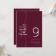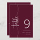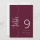 This elegant wedding table number features an elegant calligraphy and simple sans serif typography font for a clean minimalist and modern look in a burgundy background, which is a beautiful way to help your guests find their seat/table. The simplicity of this design adds a touch of elegance to your wedding. It works well with many wedding themes and definitely a great addition to your wedding stationery. Just customise the names. wedding/event date, and table number in a few easy steps and personalise it to give it a nice personal touch.