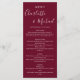 Burgundy elegant signature wedding menu card featuring signature style names, this modern menu card can be personalised with your special event details in chic white lettering. Designed by Thisisnotme©