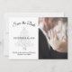 Ask your guests to save your wedding date with this simply elegant design featuring your photo, modern script, black text and a starry silver Christmas tree. Customise it with your photo, wedding date, names and location. A burgundy background is on the back of the card.