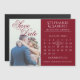 Announce your wedding date in style with these elegant burgundy magnetic save the date cards. The design features simple typography and a personalised wedding calendar on which you can mark your wedding day with a cute white heart. Customise the cards even further with a romantic couple's photograph, names, and the location of the wedding.