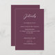 Complete your wedding suite with this Elegant Burgundy Wedding Details Enclosure Card, designed to share important details with your guests. Featuring a rich burgundy background and a sophisticated calligraphy script title, this design exudes timeless charm and simplicity. Perfect for providing accommodation information and wedding website details, this enclosure card beautifully complements the Blush Pink Watercolor Wedding Invitation Collection, ensuring a cohesive and refined look for your special day.