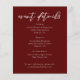 This solid burgundy wedding event details paper sheet features classic white script for a bride and groom getting married at a formal evening venue. Embrace romance with this rich, bold colour. Minimalist and romantic typography for a modern couple.