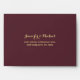 Create your own custom, personalised, simple, elegant, stylish, beautiful faux gold script typography calligraphy, smooth, classic, matte, dark burgundy and gold, wedding / anniversary / party / event return address envelopes for RSVP. Simply enter the couple's names (bride & groom / wife & husband) / your name / family name / company name, and address. Perfect for both, home and business, personal and official mailings. Elegant RSVP return address envelopes for use on wedding, marriage anniversary, parties, events, or any other special occasion.
