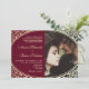 Invite your guests with timeless elegance using this burgundy wedding invitation featuring gold accents and a scannable QR code for RSVP. The modern layout blends classic romance with digital convenience, making it perfect for couples planning a tech-friendly celebration. A photo option and luxurious gold framing add a personal and refined touch for your special day.