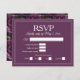 This elegant wedding RSVP card features a rich plum and mauve floral design paired with a refined double-line border for a romantic, sophisticated look. The front provides a clear and organized layout for guest responses, including attendance, number of guests, and entrée selections, while the coordinating floral back adds a polished finishing touch. Designed to complement formal, classic, and romantic wedding themes, this RSVP card blends beauty with practicality.