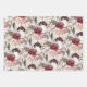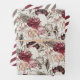 Three sheet wrapping paper set with elegant burgundy, wine, and cream-coloured watercolor floral and green leaves with matching diagonal stripes.