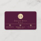 Elegant Burgundy Wine Gold Shiny Circle Monogram Business Card