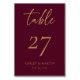 Elegant Burgundy with Gold Personalised Wedding Table Number