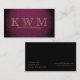This elegant business card design has a burgundy background with a subtle diamond pattern in a lighter colour. In the centre are your business initials or your monogram in an eye-catching gold with your name or business name just below it. The back has a black background with your contact information in gold. Perfect for any business but especially great for alternative heathcare, decorating, chiropractic services, massage therapy, nail salon, spa, jewellery, cosmetologist, fashion, beauty consultant, personal trainer, or any time you would like an elegant touch. Add your information and it is ready to go!