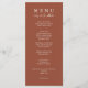 A modern and elegant minimalist chic wedding terracotta fall dinner menu. Which features chic template design of burnt orange solid background and white typography . And let's eat wording in elegant chic white calligraphy. Grab it and make your wedding menu chic and classy.