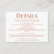 Elegant Burnt Orange Wedding Details Enclosure Card