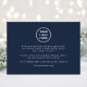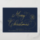 An elegant dark blue corporate holiday card that features your company logo (upload a black version for best results) "Merry Christmas" showcased in a stylish calligraphy script and your business name in classic serif typography, all rendered in your choice of genuine gold, silver or rose gold foil. On the back, upload a white or light coloured version of your logo, personalise your seasonal greeting and message of customer appreciation, and add your website or other information if desired.