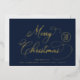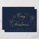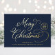 Elegant Business Logo Merry Christmas Blue Foil Holiday Card