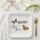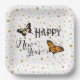 Elegant Butterflies & Stars White Happy New Year Paper Plate