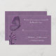 Lovely response RSVP card done with a rich purple damask background with graphics of embossed looking butterfly and flowers, on the left side. Customise the text to suit your needs. Matching birthday party invitation available.