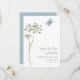 Elegant Butterfly Wildflower QR Code Blue Wedding. Minimalist elegance with this wildflower and blue butterfly design with dusty blue accents and background on the back. Easily personalise with your details. Add a QR code on the back for your guests to scan to visit your wedding website or delete the sample code if not required. Change the text and background colours if you wish to match your own wedding colour theme via the Edit further option.