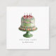 A bakery business card that feels refined, artistic, and artisan. This elegant cake bakery design features a tall buttercream celebration cake decorated in a vintage inspired Lambeth piping style with delicate swags, pearl borders, rosettes, and glossy cherries in soft mint green, pink, and blue tones. The illustration reflects the look of contemporary boutique bakeries where classic piping techniques and tall layered cakes create beautiful centerpiece desserts for weddings, birthdays, and celebrations. The soft linen texture background and graceful typography give the card a sophisticated artisan bakery aesthetic while keeping the cake illustration as the focal point. Ideal for cake bakers, pastry chefs, custom cake studios, dessert caterers, and boutique bakeries specializing in handcrafted buttercream cakes and celebration desserts.