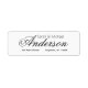 Elegant return address label with a prominent name line in a calligraphic script typeface. First name line in light compressed typeface to offset script. Address details in an understated minimal font, but still clearly readable. Fully personalizable. Contact to assist with customisations to fit your need. NOTE: For proper formatting you may want to manipulate text with spaces and/or line feeds (returns).