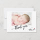Trendy modern minimal typography script baby shower thank you card template personalised with newborn baby photo and your text.
