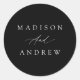 Elegant Calligraphy Black and White Wedding Classic Round Sticker