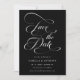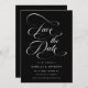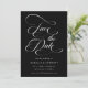 Romantic black and white wedding save the date featuring elegant and romantic swirly calligraphy lettering with a photo on the back. Perfect for any season. For more advanced customisation of this design, please click the BLUE DESIGN TOOL BUTTON above!