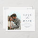 Elegant Calligraphy Blue Photo Save The Date Postcard