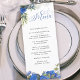 Elegant Calligraphy Blue Roses and Eucalyptus Menu