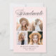 Elegant graduation announcement featuring "Graduate" displayed at the top in a black calligraphy script with a blush pink background. The design features four photos of the graduate displayed in a collage-style layout with the graduate's name, school name, and graduation year shown below. The 4 photo graduation announcement reverses to display optional text such as future plans, graduation party details, etc. The chic graduation announcement is perfect for announcing the graduation of both high school and college graduates.