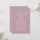 Dusty Rose wedding table seating card with elegant calligraphy and editable typography. Simple, modern minimalist design to suit your wedding colours. Table is lettered in handwritten script and the template is ready for you to edit the table number and your guest seating list.