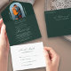 Elegant Calligraphy Emerald Photo RSVP Wedding All In One Invitation
