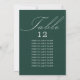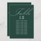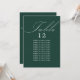 Emerald Green wedding table seating card with elegant calligraphy and editable typography. Simple, modern minimalist design to suit your wedding colours. Table is lettered in handwritten script and the template is ready for you to edit the table number and your guest seating list.