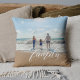 Custom-designed custom photo throw pillow featuring elegant "family" calligraphy.