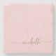 Elegant Chic Modern Gold Monogram Name Signature Script Custom Personalised Stone Coaster. This design featuring custom name in a cursive hand lettered swash tail font calligraphy (or typography) in gold on blush pink or baby pink colour background. These are easy to customise it. Great stylish feminine housewarming gift, also for birthday, wedding, sweet 16 birthday party, bridal shower, mother’s day and It’s for the girl who loves unique stylish things.