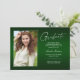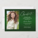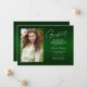 Double sided, two photo modern and elegant graduation announcement cards, featuring design elements of modern text with a unique handwritten style ink script. The graduate's photos on the front & back of the card are accented with a delicate & minimalist gradient boarder (The back photo is perfectly set and ready to be framed). The background is a special gradient design, creating beautifully vibrant shades of green ranging from emerald to deep forest and hunter green. The front of the card offers personalised text spaces for information about your graduation or can be reworded to make this card a grad party invitation. Perfect for the high school, college and university grad student.