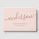 Elegant wedding guest book with the new surname in an elegant calligraphy script font. Real foil text on a light blush pink or custom colour background. The background colour can be changed in the design tool.
