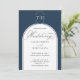 Elegant Calligraphy Navy Blue Monogrammed Wedding Invitation