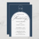 Navy Blue wedding invitation with elegant script calligraphy, logo style monogram and modern arched frame. Simple elegance, in blue and white. Coordinating invitations, stationery and day of event decor can be found in my Wedding Colours collection. If you would like different colours or additional templates for matching products, please message me to add them for you.