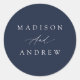 Elegant Calligraphy Navy Wedding Classic Round Sticker