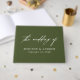 This elegant wedding guest book is perfect for stylish, modern weddings. The design features "the wedding of" displayed in white calligraphy with your names and wedding date shown below on an olive green background. Add your custom text to the spine of the minimalist wedding guest book. The back of the guest book features your horizontal engagement photo.