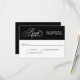 A beautifully elegant wedding RSVP card with lovely calligraphy script RSVP text in silver over a contrasting black background. Edit the response date with your desired RSVP date. Another RSVP card design is available in this wedding collection that includes customisable entree selections.