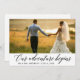 Elegant Modern Calligraphy Our Adventure Begins Wedding Photo Thank You Card