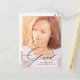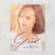 This elegant graduation postcard features delicate calligraphy and a large photo. On the front, the word "Grad" is written in lovely black script across the bottom of the card. Add the graduate's name, graduation year, and school at the bottom. The pretty typography design overlays a large vertical photo. On the back of the grad postcard you can add a message to recipients and/or graduation party information.