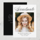 Elegant graduation announcement featuring "Graduate" displayed at the top in a black calligraphy script. The design features the graduate's photo with the graduate's name, school name, and graduation year shown below. The photo graduation announcement reverses to display optional text such as future plans, graduation party details, etc. The chic graduation announcement is perfect for announcing the graduation of both high school and college graduates.