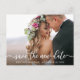 Modern Elegant Calligraphy Script Save The New Date Wedding Postponed Couple Photo Postcard