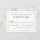 A beautifully elegant wedding RSVP card with calligraphy script detailing, a gold thin line border and marble texture on the back.