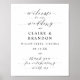 Elegant Calligraphy Script Wedding Welcome Sign in beautiful flowing fancy letters and your personalised names, location, and date. A stylish yet simple formal design in black and white or any background colour you choose. Just click the customise further link, shown under the text personalisation area on the right, and choose your custom colour background. This sign poster template makes it fast and easy to create stunning additions to your wedding decor. Signs can be enlarged, there are many sizes to choose from, as well as options for custom framing and matting. Welcome to our wedding custom signage.