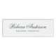 Chic name tags featuring your name in a pretty calligraphy script font with your title or company name below printed in dark grey on a white background.