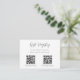 Need to include more details with your invitation? This customisable enclosure card has two custom text fields for sharing important information with your guests. Design features soft black calligraphy script and italic lettering with a solid soft blush back. Customise the text and personalise to match your event colours or theme. This Registry enclosure card includes two customisable QR codes for multiple registries.