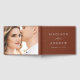 This elegant wedding guest book is perfect for stylish, modern weddings. The guest book features your names and wedding date in white lettering with a terracotta-brown background. Add your custom text to the spine of the minimalist wedding guest book. The back of the terracotta wedding guest book features your horizontal engagement photo.