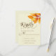 This elegant wedding RSVP card features orange and red watercolor fall leaves with calligraphy script and a minimal design layout. Perfect for a rustic or Autumn wedding.